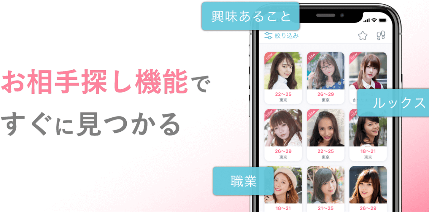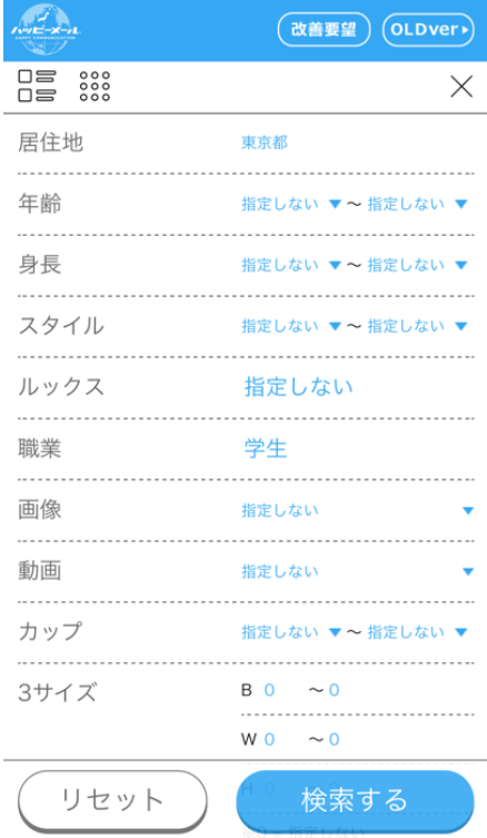 これらの項目に設定した上で検索ボタンを押すと、これらの項目に興味がある女の子のみ画面に表示されるようになります。