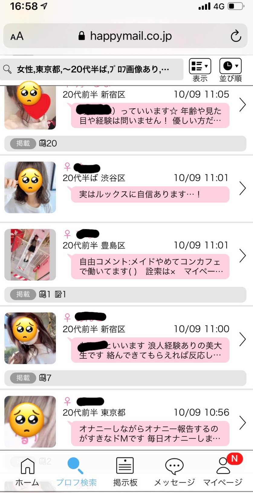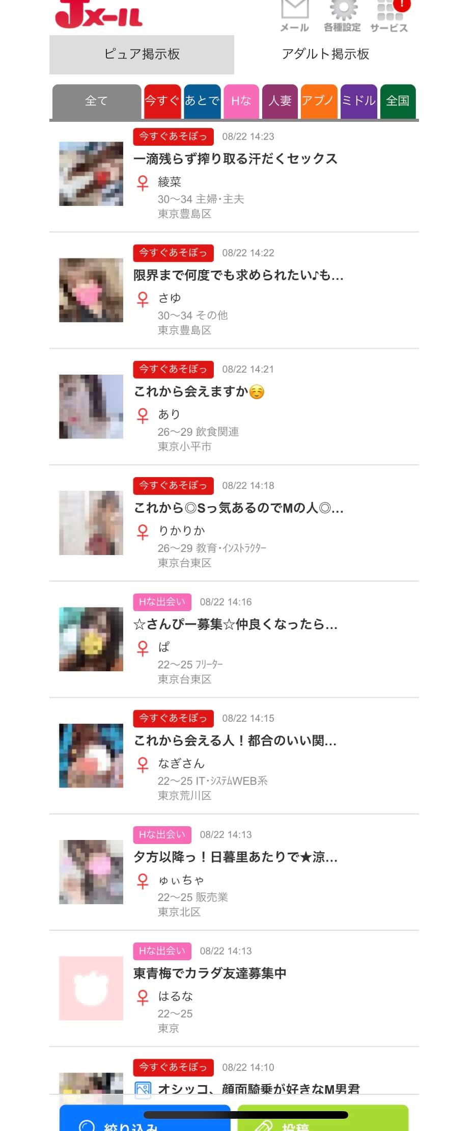 下の写真はjメールの「アダルト掲示板」の画面です↓↓