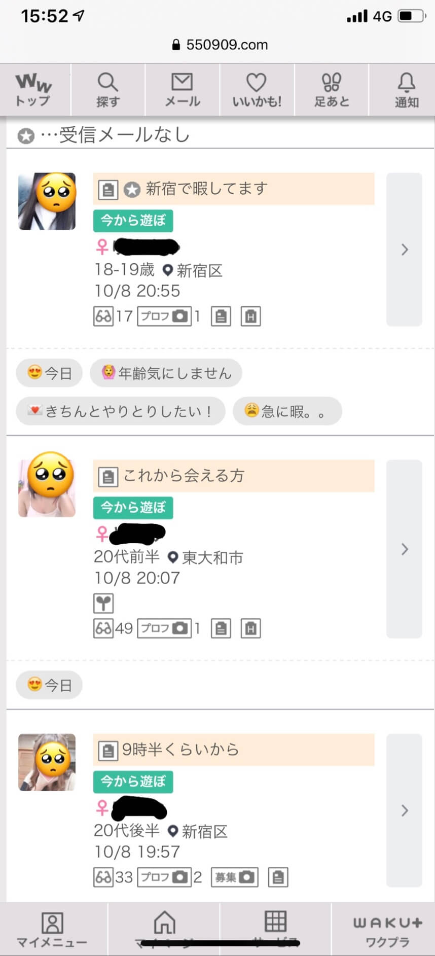 ワクワクメールの魅力的な機能として、今ヒマしている子が分かる機能です!↓↓